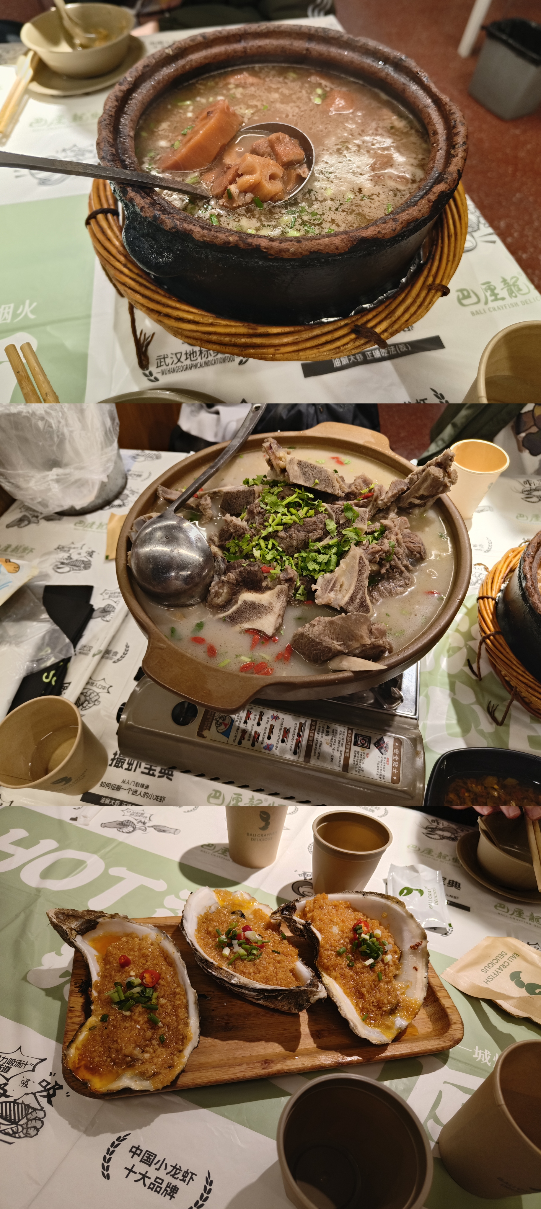 去机场的时候尝试了一下广州新开的东环城际,没什么人坐,很舒服,也不用换乘,不过价格是地铁的三倍。飞机上依旧睡觉,到了武汉拉着行李去雪松路吃了好吃排骨生蚝和好喝藕汤,三人赞不绝口。